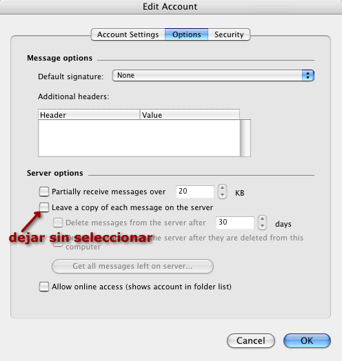 Seleccionar tipo de correo POP